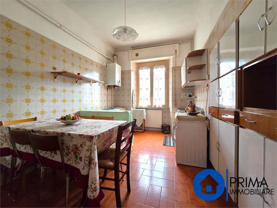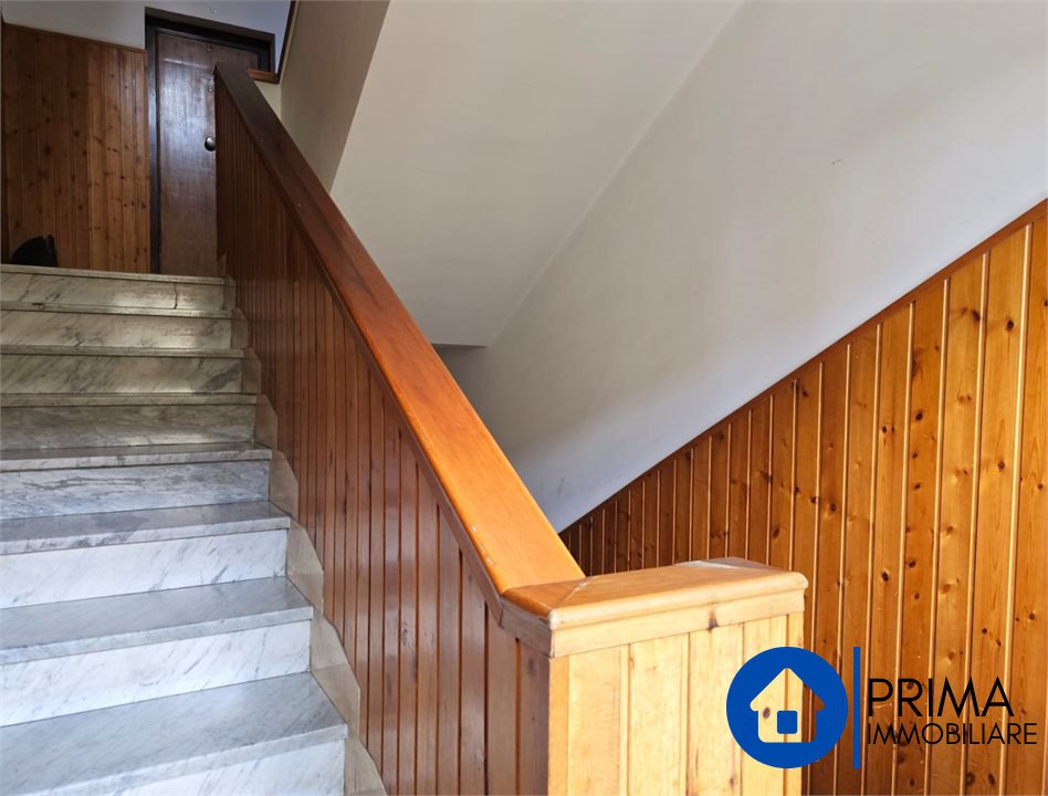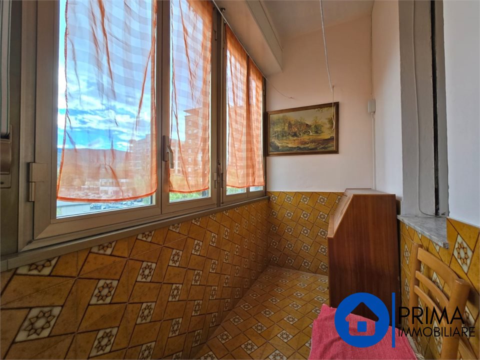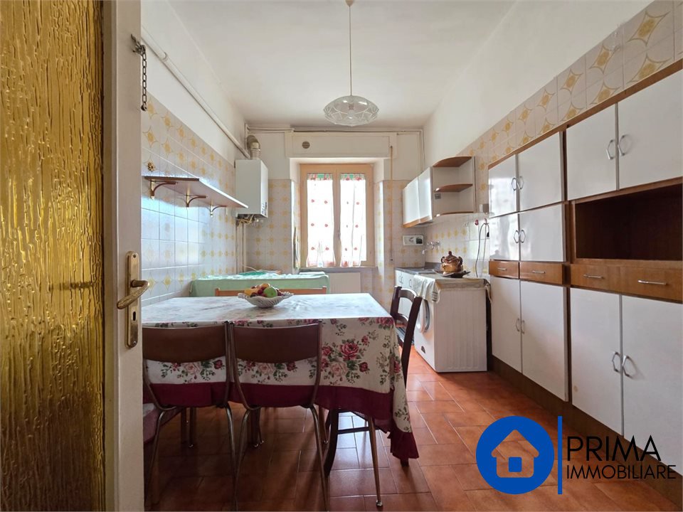 The property, located on the second floor, is large and bright thanks to the many windows. We enter towards the hallway that leads to the left to the large eat-in kitchen, continuing we find the living room with French windows towards the veranda balcony. The living room leads to a small room with a window to be used as a study or as a large storage room.