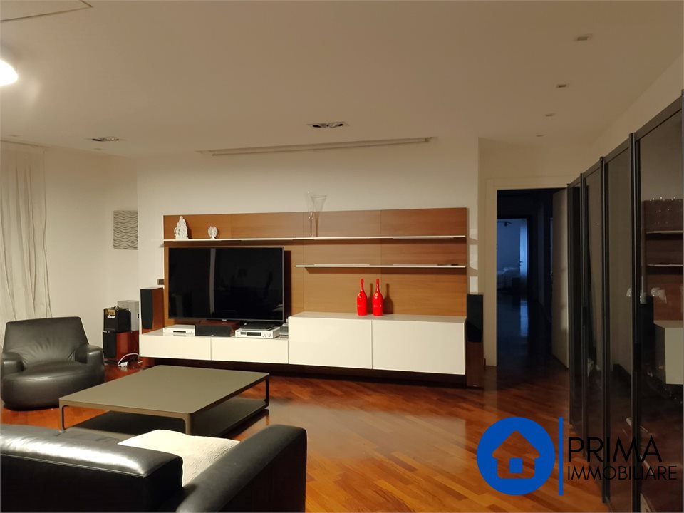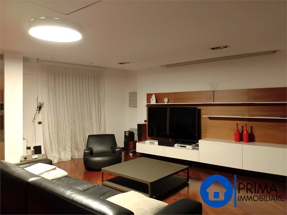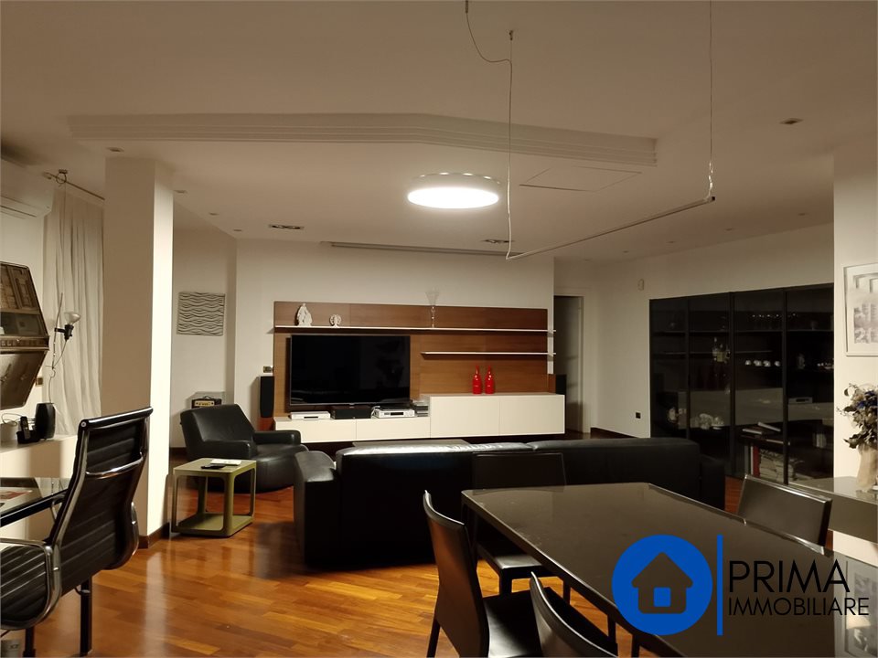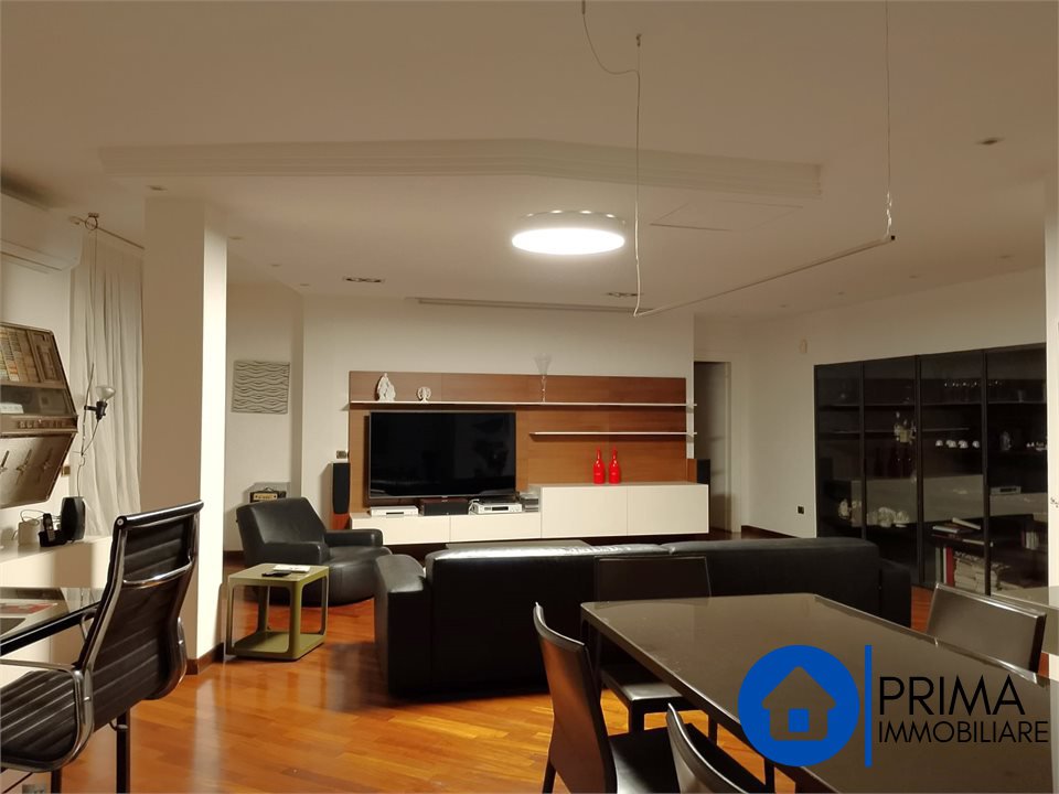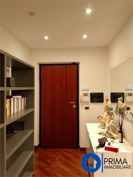 L' immobile, in ottimo stato, è totalmente mobiliato in stile contemporaneo e si compone di: ingresso, ampio soggiorno, cucina abitabile con piastre ad induzione, balcone, ripostiglio e bagno. La zona notte comprende 2 camere matrimoniali ( di cui una con bagno en suite dotato di vasca jacuzzi) , una camera singola ( da utilizzare anche come studio o guardaroba), 1 bagno per gli ospiti. Da ogni stanza è possibile accedere al terrazzo perimetrale.