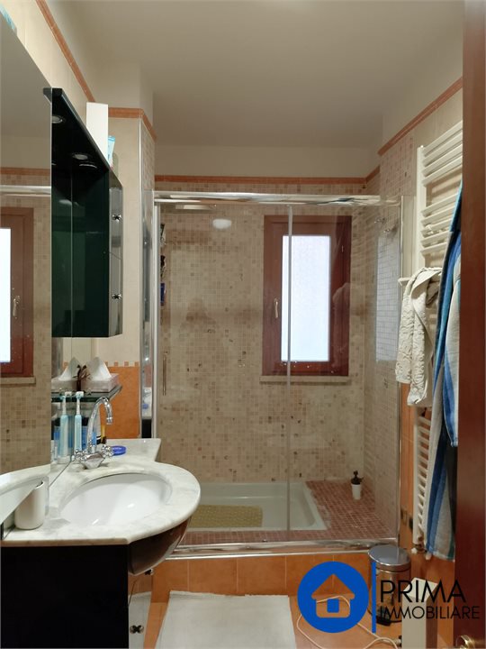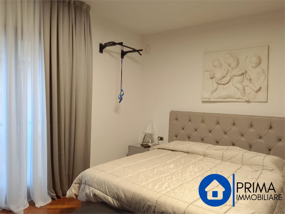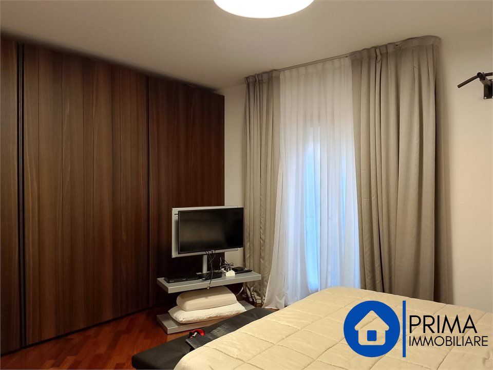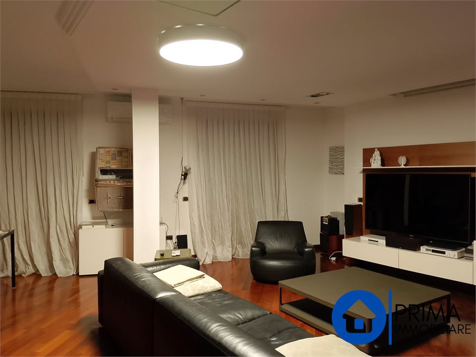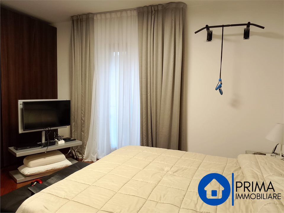 L' immobile, in ottimo stato, è totalmente mobiliato in stile contemporaneo e si compone di: ingresso, ampio soggiorno, cucina abitabile con piastre ad induzione, balcone, ripostiglio e bagno. La zona notte comprende 2 camere matrimoniali ( di cui una con bagno en suite dotato di vasca jacuzzi) , una camera singola ( da utilizzare anche come studio o guardaroba), 1 bagno per gli ospiti. Da ogni stanza è possibile accedere al terrazzo perimetrale.