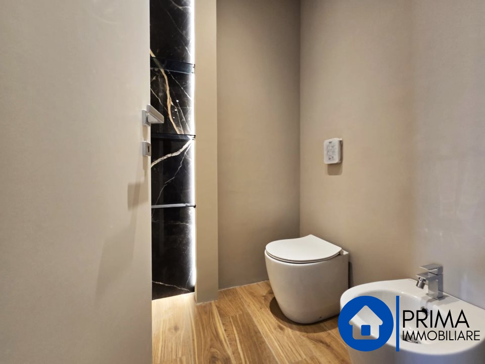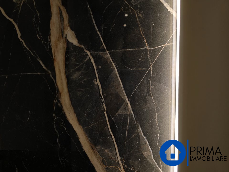 Stupiscono senza altro i dettagli di ogni ambiente come lo splendido marmo nero con venature bianche utilizzato nei bagni, il moderno pavimento in grès effetto legno, il lavabo da appoggio posato sul pregiato pianale in legno.... Tutto accuratamente selezionato.