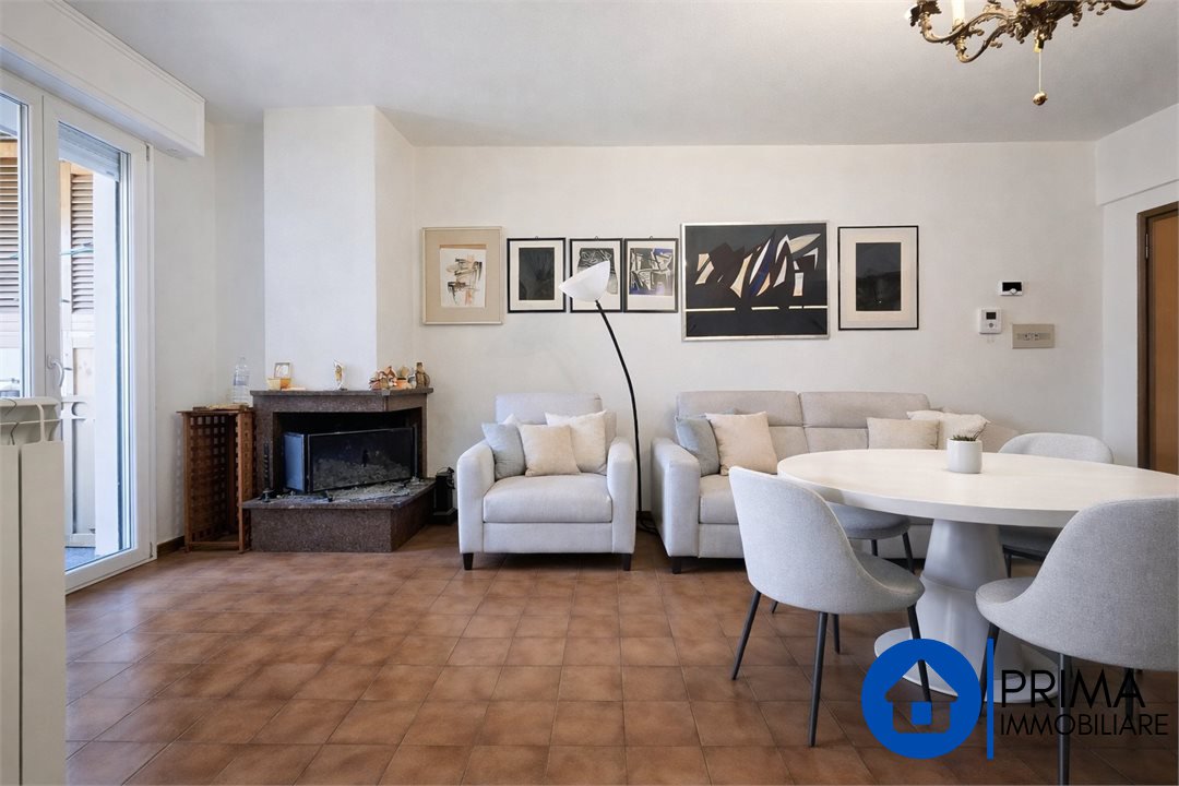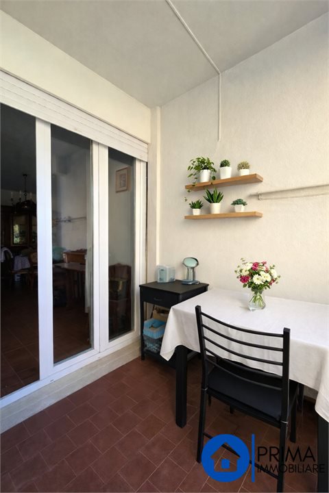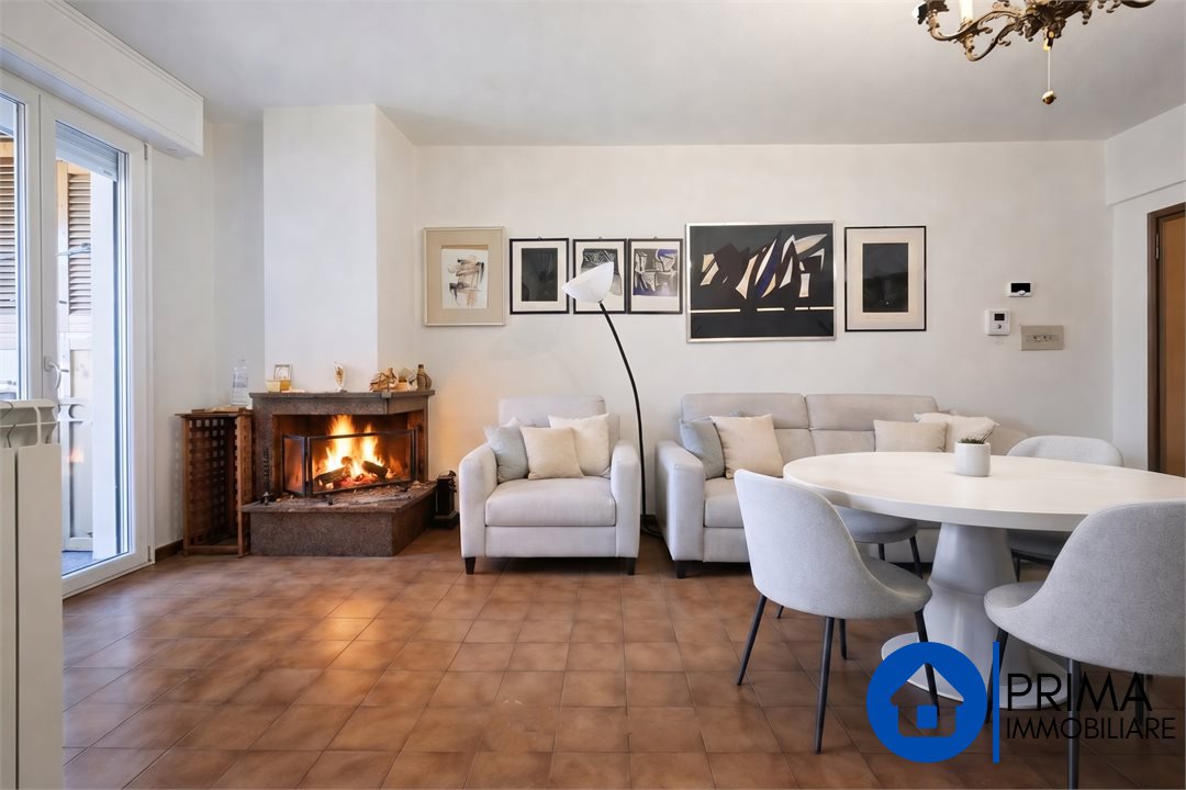 L'appartamento è posto ad un piano comodo, raggiungibile sia a piedi che con l'ascensore, si accede dal portoncino blindato verso lo spazioso salone che offre anche un camino funzionante e un'ampia porta finestra verso il terrazzo abitabile dove si può anche mangiare.