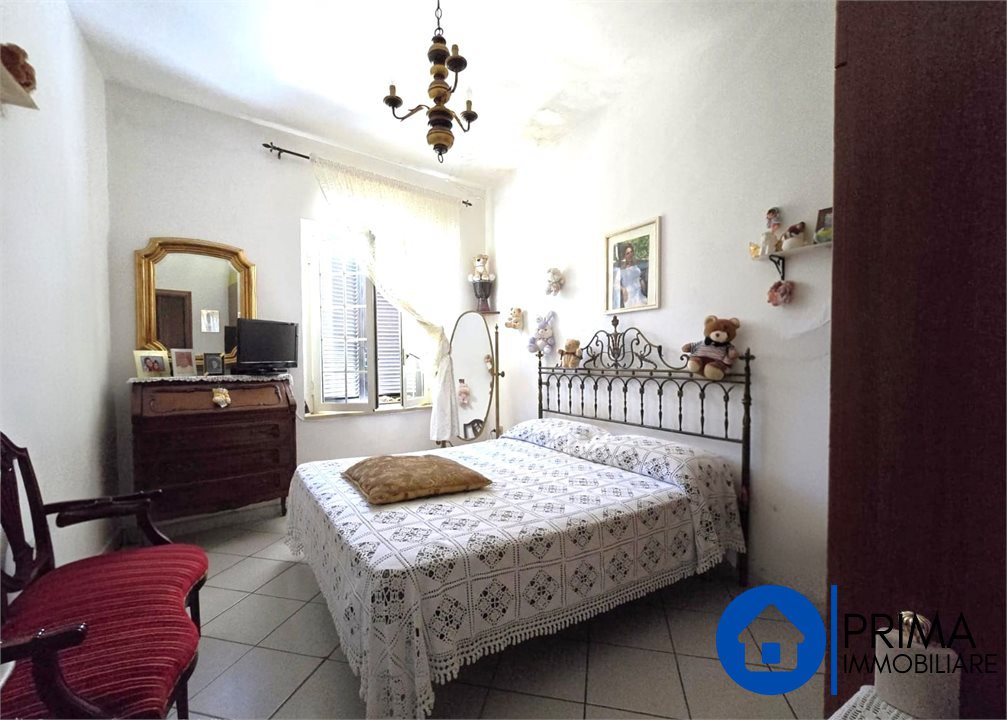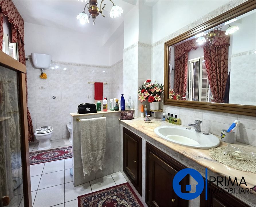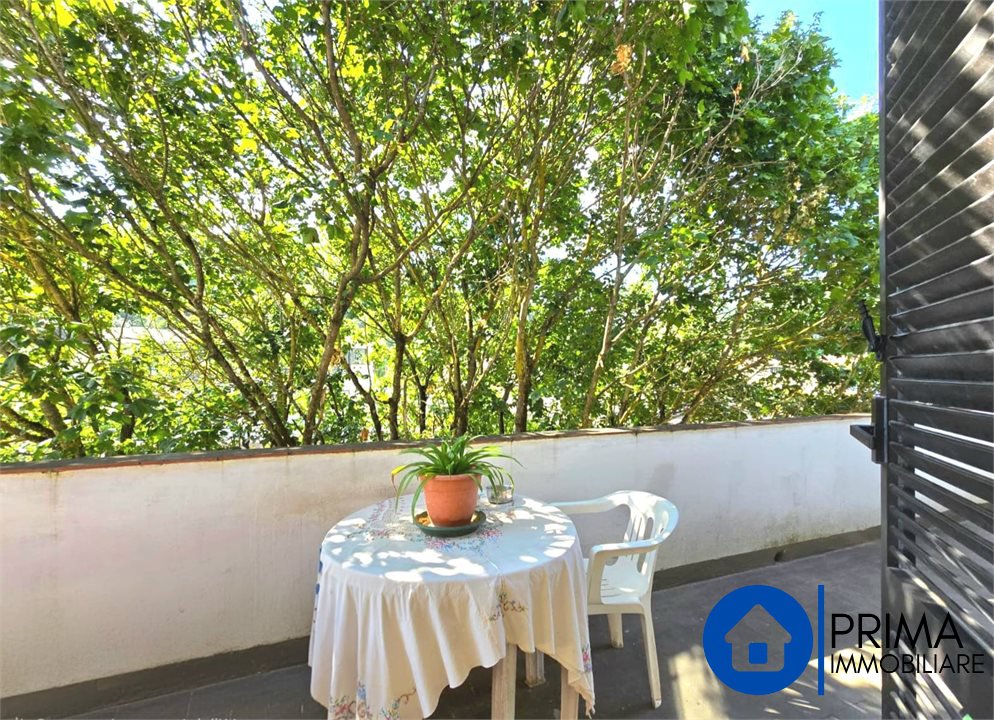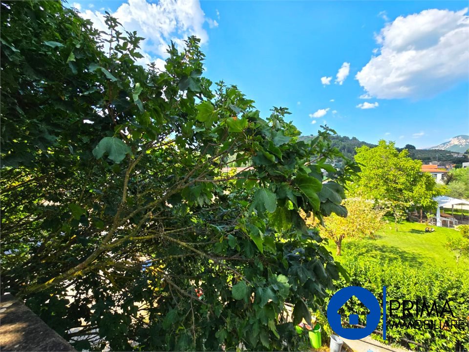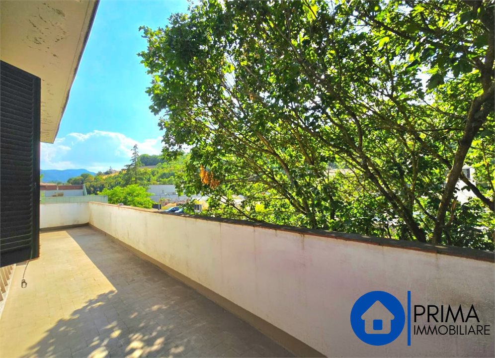 -Al primo piano con un ingresso sia dall'esterno ed dall'interno dal locale, troviamo un grande appartamento composto da salone, cucina abitabile con camino, tre camere da letto matrimoniali, bagno con vasca, ripostiglio e un grande terrazzo con affaccio sul verde: