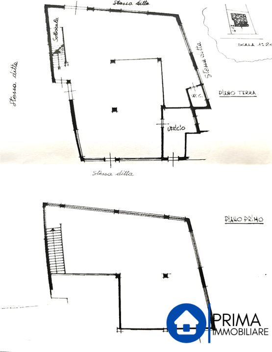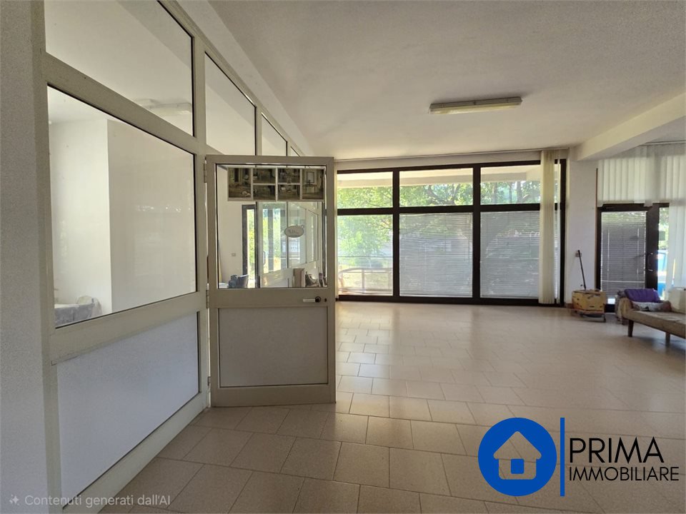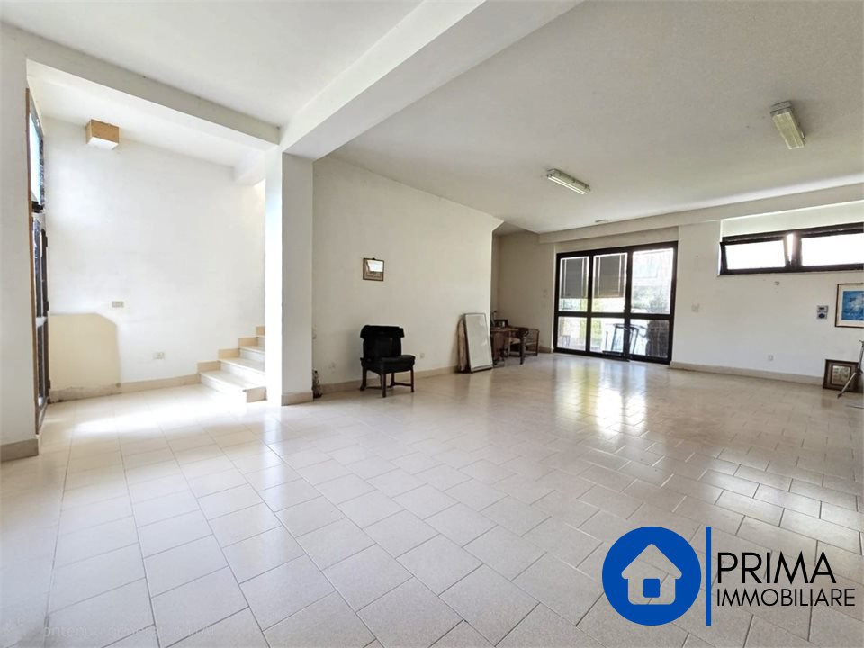 - Al piano terra troviamo un ampio locale commerciale con molte vetrate, una zona ufficio e il bagno, questo livello della casa era utilizzato per l'esposizione e la vendita di mobili, grazie ad una semplice variazione catastale può divenire una taverna o un appartamento al piano terra.